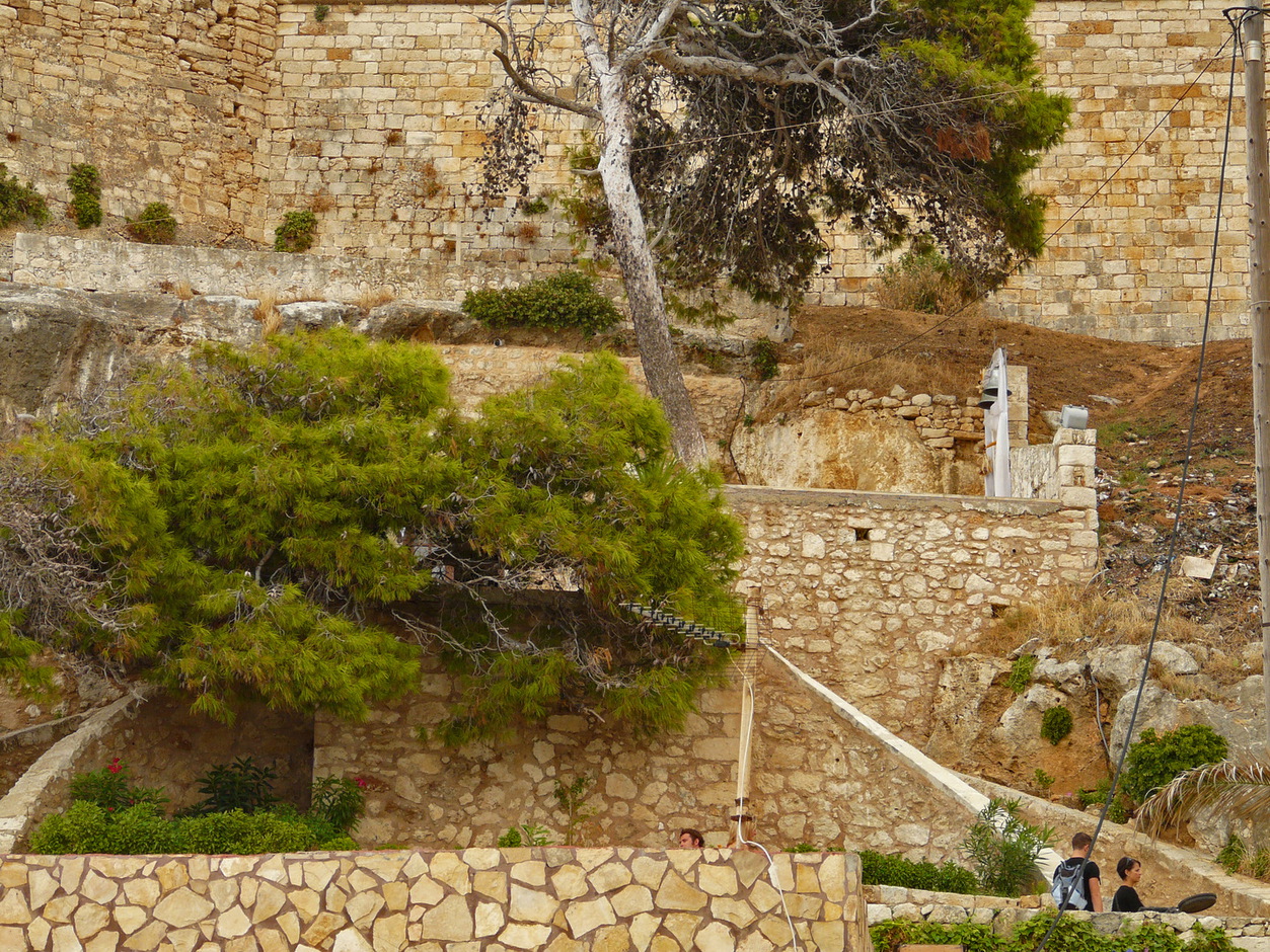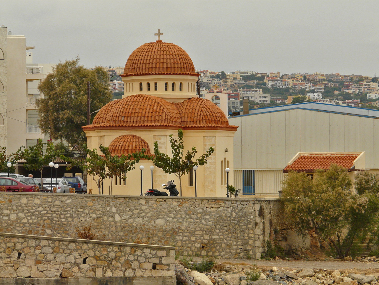 Sehendwürdigkeiten: die Agios Nikolaos Kapelle im Meer und die Kirche im Ortskern.