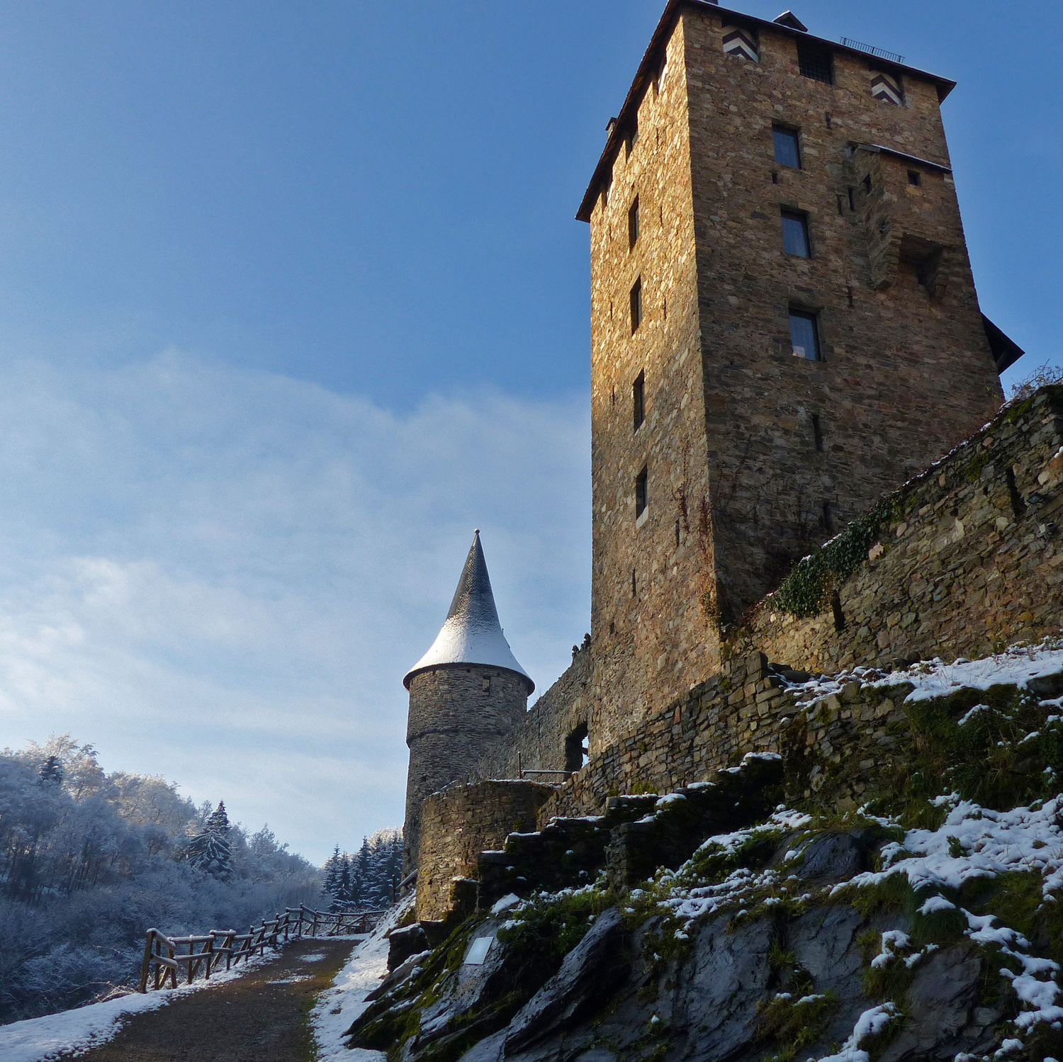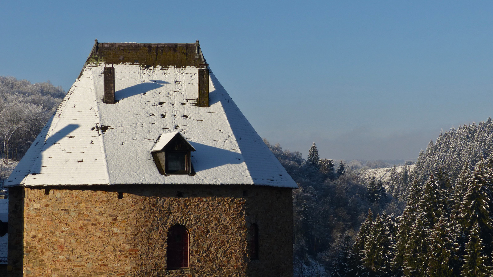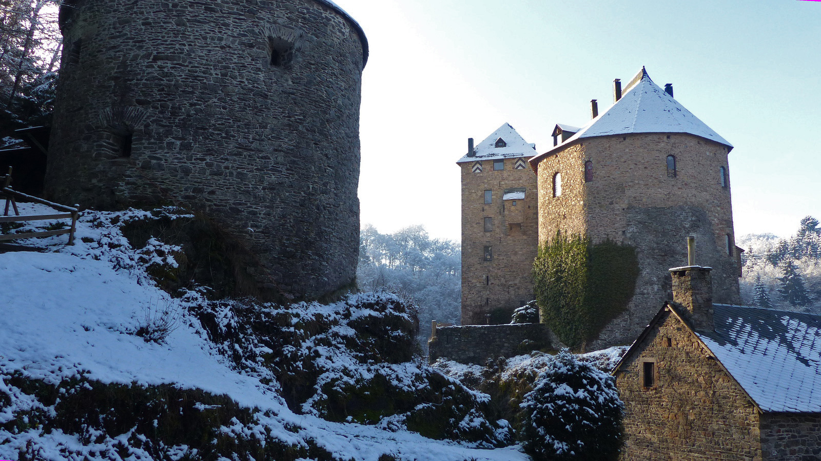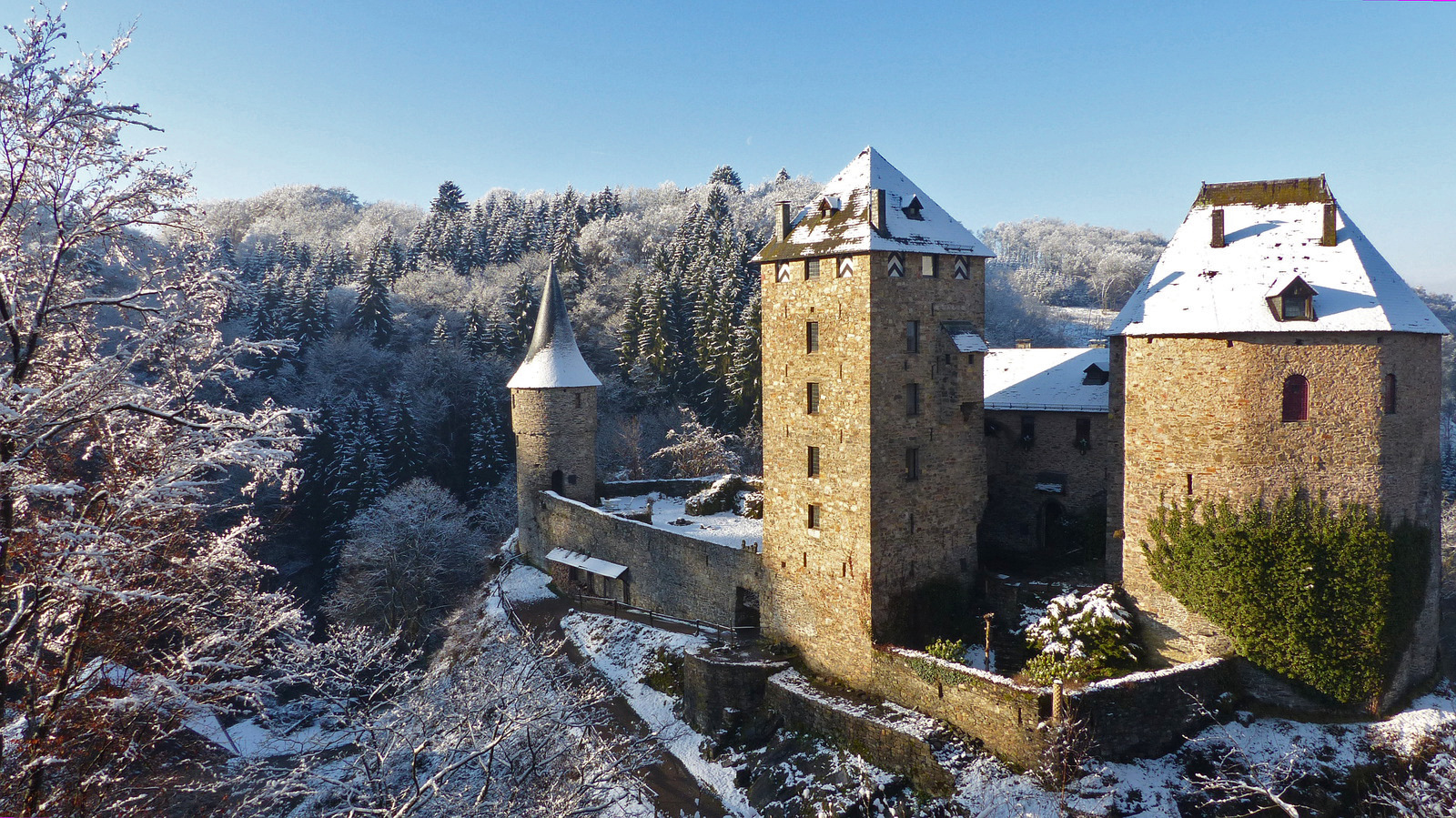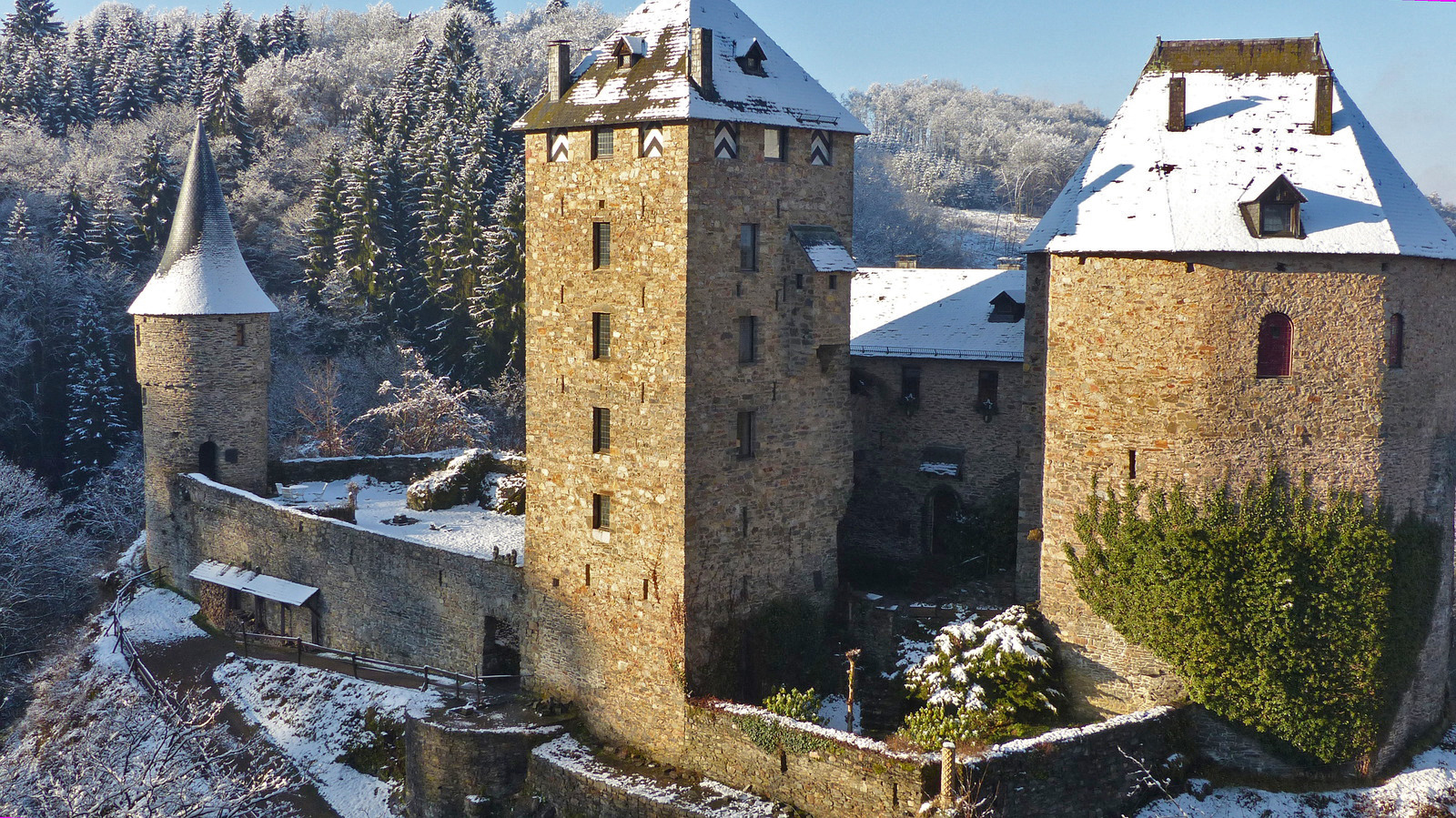 Die Burg wurde 1354 für Graf Wenzel von Luxemburg von seinem Vasallen Reinhard von Weismes erbaut. 1 Michelin-Stern.